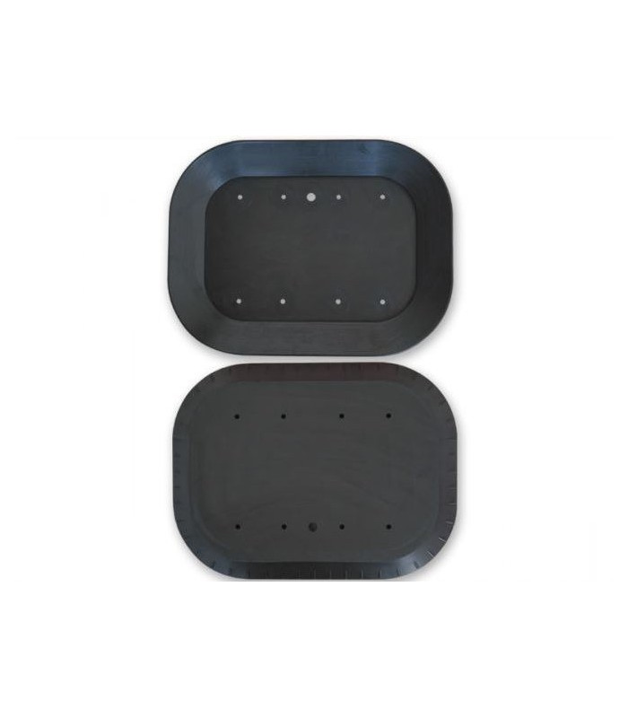 Suction seal steel industry 380 x 500 mm with attached black NBR 60 shore with 8 holes on the suction cup for mounting the two plates, one being at the inside and the other to the outside.